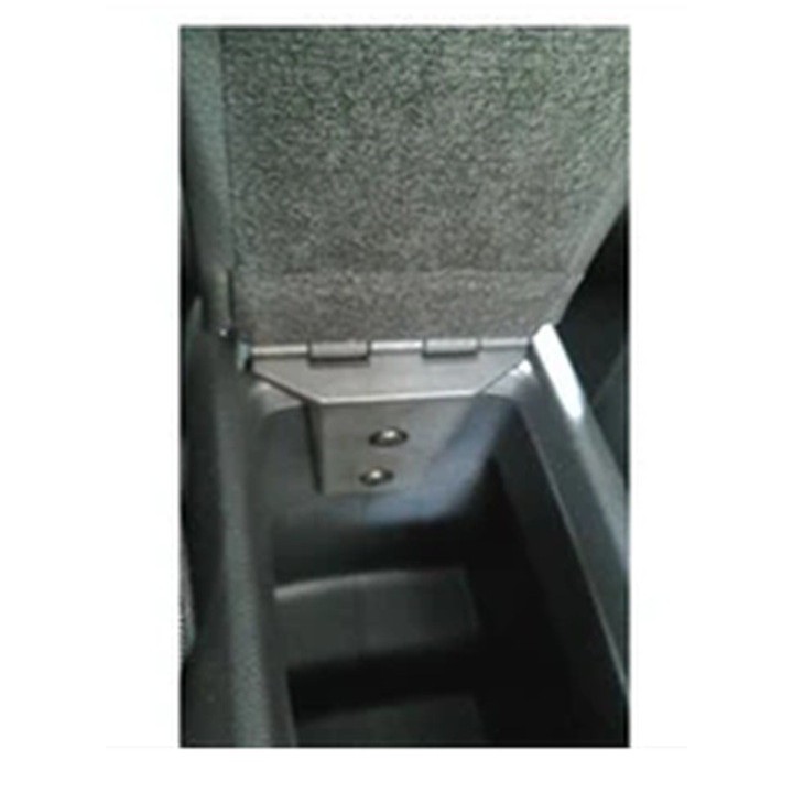 L'accoudoir se relève pour permettre l'accès au compartiment de rangement d'origine situé sur le tunnel central du véhicule.