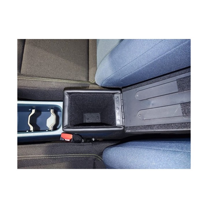 Contrairement au modèle standard doté d'un bac de rangement en plastique, ce modèle PREMIUM est équipé d'un bac de rangement entièrement recouvert de similicuir à l'extérieur et de feutrine noire douce à l'intérieur. L'accoudoir s'intègre ainsi parfaitement à la voiture et bénéficie d'une finition haut de gamme.