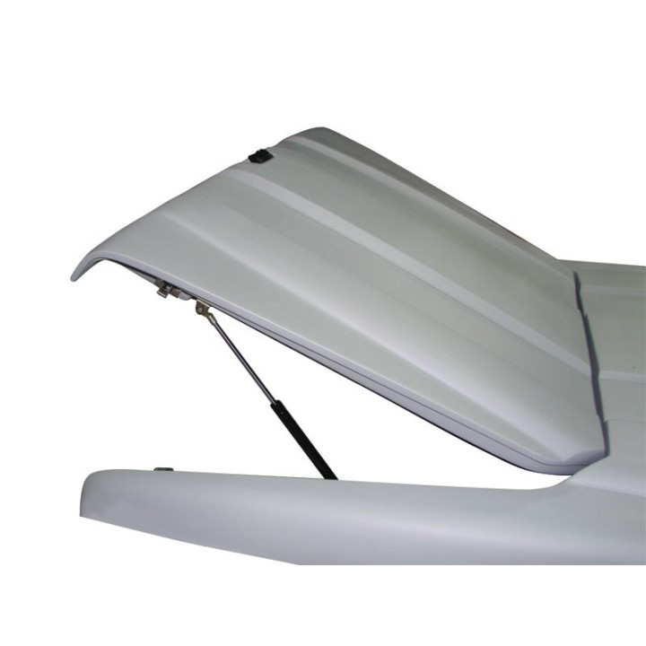 Opening is done via a fully mechanical compass and gas strut system that requires no intervention on the vehicle's electrical system.