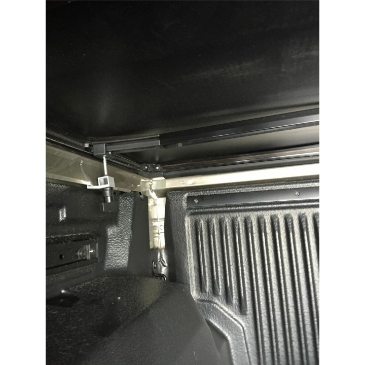 The SEMI-RIGID PVC TONNEAU COVER can be rolled up in 3 simple steps: loosen the latches, roll the cover towards the cab, secure the rolled fabric with the straps.