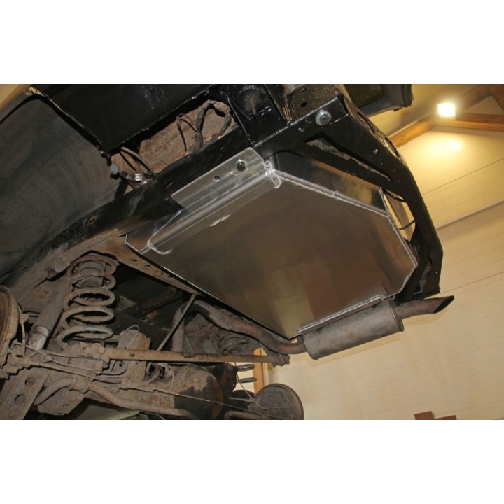 The 100-liter auxiliary fuel tank for the Toyota Land Cruiser 100 is made of 6 mm thick aluminum for the bottom plate and sides, and 3 mm thick for the top part of the tank.