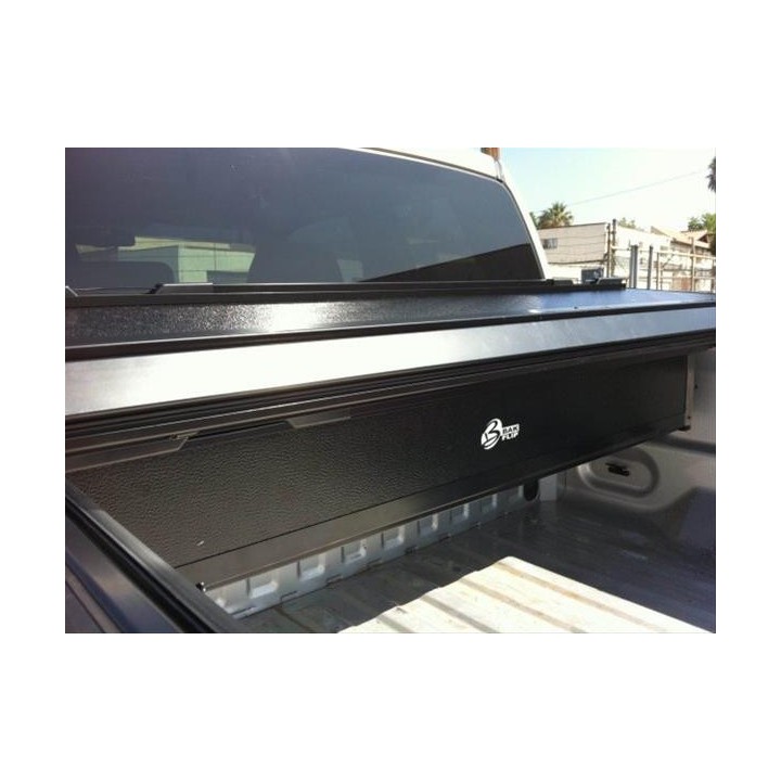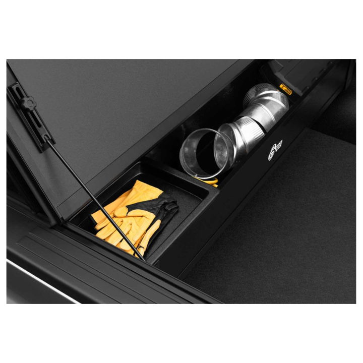 This storage box is a foldable toolbox from Bak Industries for use with bed covers: Revolver X2, X4s, Bakflip G2, Bakflip MX4, and Bakflip CS.