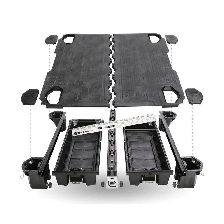 The Decked system is made of polyethylene and molded over a galvanized steel subframe. The system contains two drawers, each with a 125 cm extension. With a system weight of 100 kg, this system is perfect for your pickup truck. Each drawer can support 100 kg, and you can also place a bed slide on the Decked system as it can support 900 kg on top. A full range of accessories is available for the storage system, such as toolboxes, dividers, locks, and rails with tie-downs to mount on the Decked storage system. The system will fit truck beds with and without spray-in bed liners. If your truck is equipped with a plastic bed liner, it must be removed.