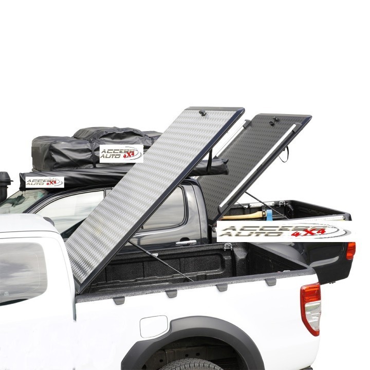 TOYOTA HILUX DOUBLE CAB BED COVER 2016 TO PRESENT GREY RIGID ALUMINUM Mountain Top With Ladder Rack
