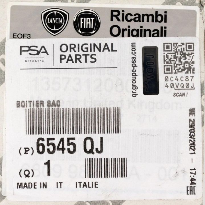 Airbag control unit original Peugeot Boxer, Citroen Jumper 2006-2014 Fiat Ducato 2006-2014 REF 6545QJ: