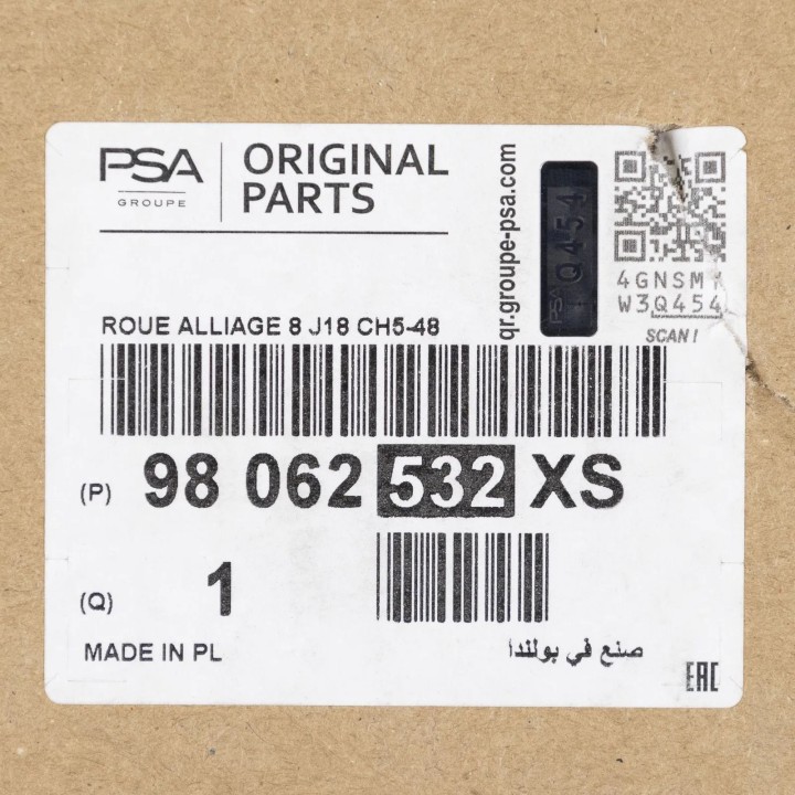 Aluminum Rim Peugeot 308 II 2013+ 18 inch PSA OE 98062532XS: