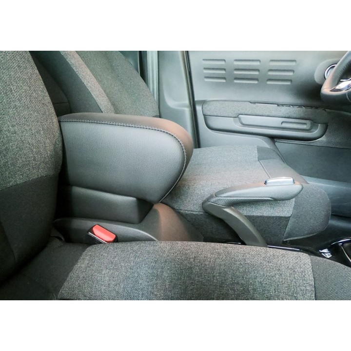 This specific armrest is custom-made for your CITROEN C3 AIRCROSS. A central armrest increases the comfort of your car by supporting your arm while driving. Under the artificial leather-covered lid, you will find a practical storage space. Ideal for storing your phone charger, sunglasses, and more. If you are not using the armrest, it can be folded up between the front seats. The central armrest has a plastic base adapted for your specific car model.