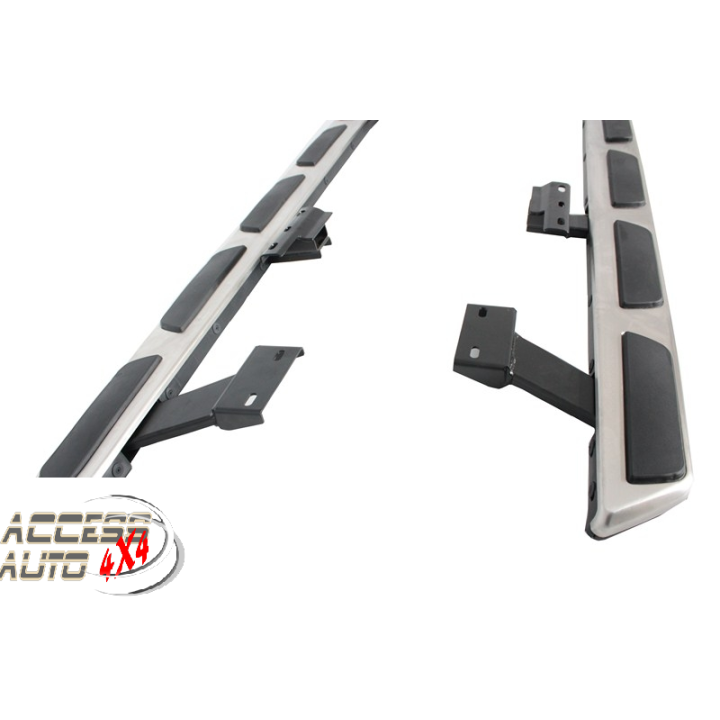 Running boards are wide aluminum plates with a profiled top. This ensures maximum slip resistance and helps you get into your vehicle safely.