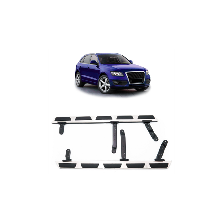 Enhance the appearance and functionality of your Audi Q5 (8R) with these elegant and durable running boards. Made of high-quality aluminum and ABS plastic, these running boards are designed to withstand the rigors of daily use while offering a sleek and modern look.