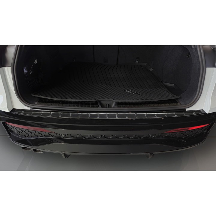 This trunk sill protection with edges effectively protects against dents and scratches during loading and unloading. Thanks to its shape, like the ribbed pattern on top, it is designed to perfectly fit the design of the AUDI Q5 SPORTBACK. And if you ever want to replace the protector after intensive use, that's also possible. It will be much cheaper than repainting your bumper.