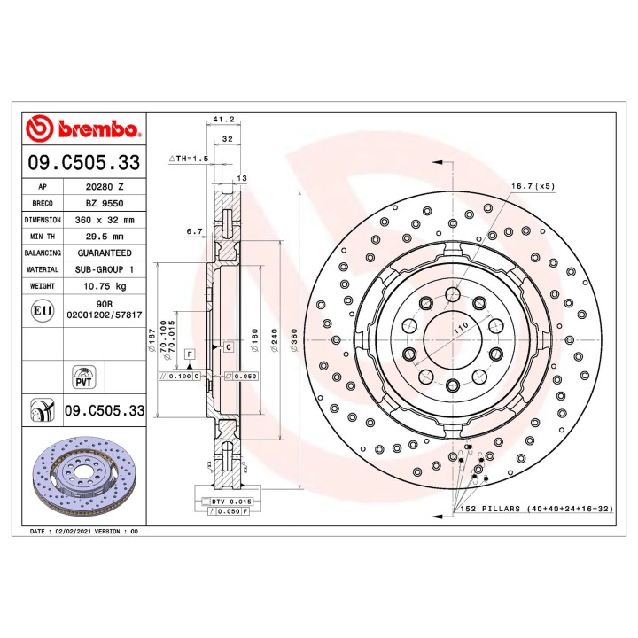 BREMBO Brake Discs Alfa Romeo Giulia 2016+ 2.9 Turbo REF 50571047:
