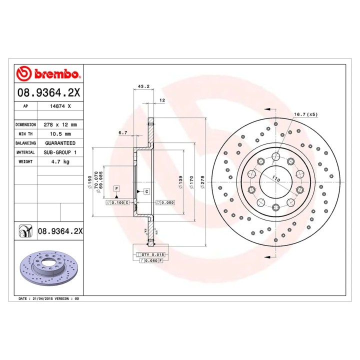 Drilled brake discs for Fiat 500X (2015-2022), Jeep Compass (from 2021) and Jeep Renegade (from 2018).