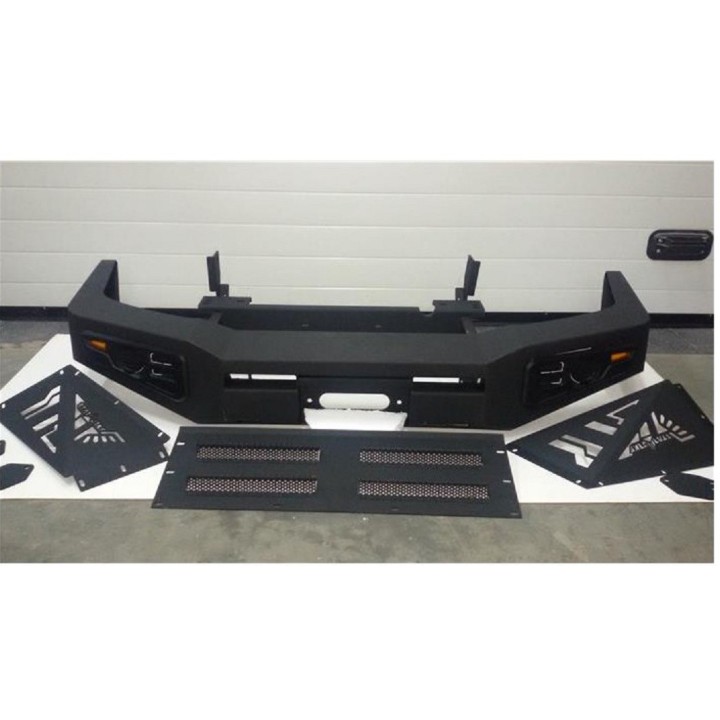 The bumper is very well made. Laser-cut elements. The whole is powder-coated in matte black. Textured powder with a rough surface.