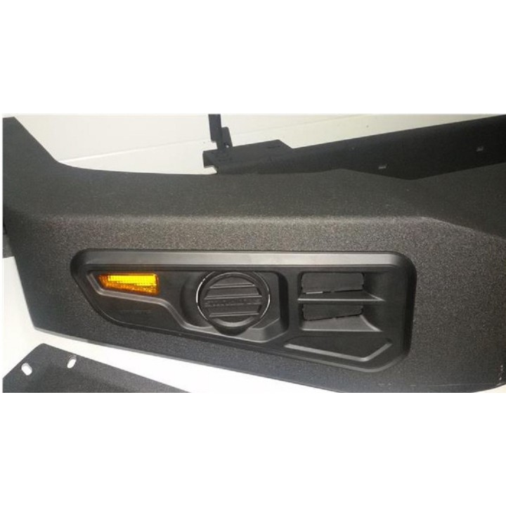 The bumper includes integrated LED turn signals.- The round headlights visible in the photo are not included in the kit.