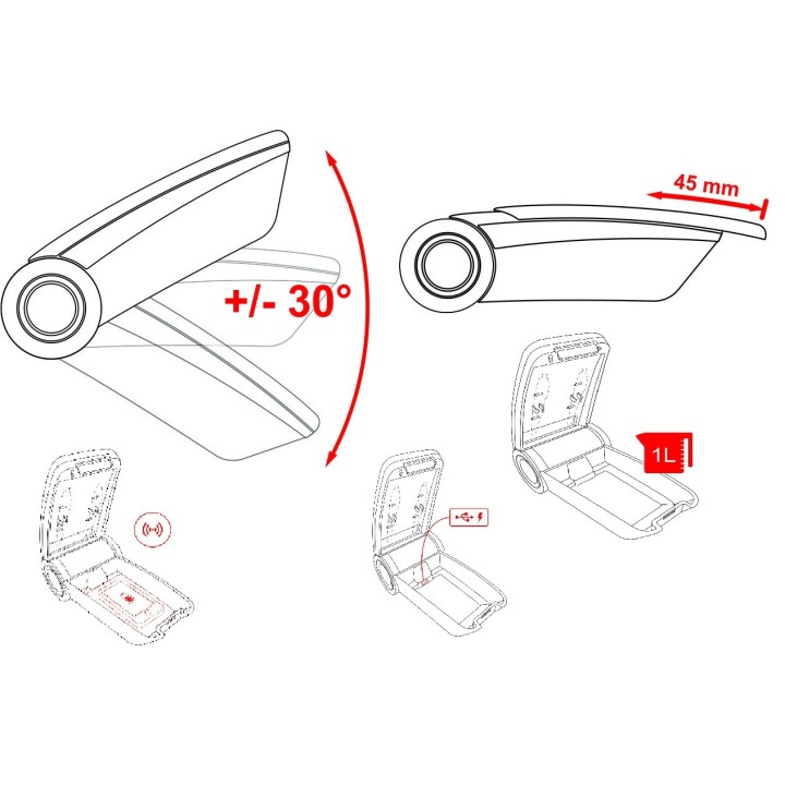 - Or upgrade your armrest with a wireless charger. Place your QI-compatible mobile in the armrest and charging starts in seconds