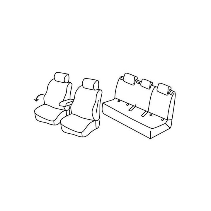 set of custom-made fabric covers for front (2 front seats + armrest + 2 headrests) + (rear bench: seat + backrest + headrests)