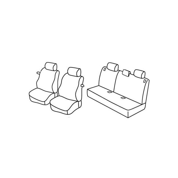 set of custom-made fabric covers front (2 front seats + armrest + 2 headrests) + (rear bench: seat + backrest + headrests)