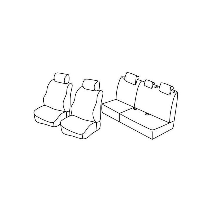 set of custom fabric covers front (2 front seats + armrest + 2 headrests) + (rear bench: seat + backrest + headrests)