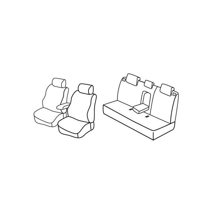 set of custom-made fabric covers for front (2 front seats + armrest + 2 headrests) + (rear bench: seat + backrest + headrests)