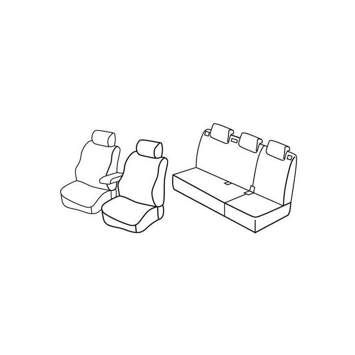 set of custom-made fabric covers for front (2 front seats + armrest + 2 headrests) + (rear bench: seat + backrest + headrests)