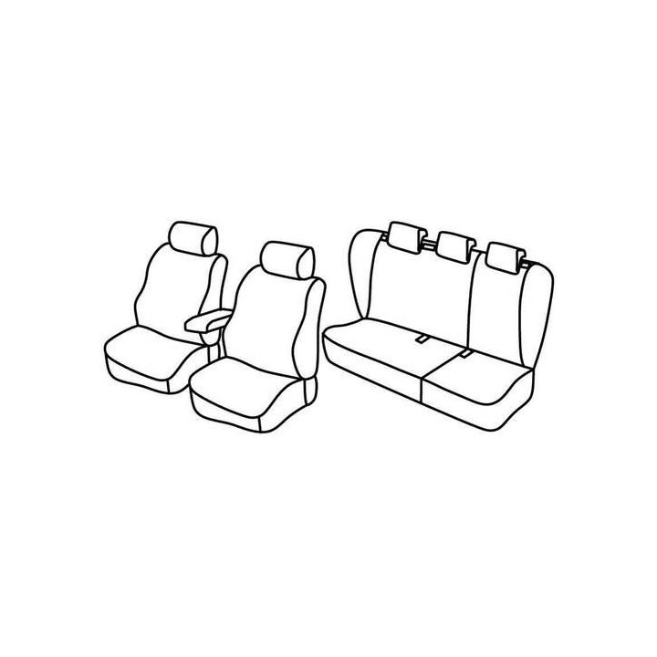 set of custom-made fabric covers for front (2 front seats + armrest + 2 headrests) + (rear bench: seat + backrest + headrests)