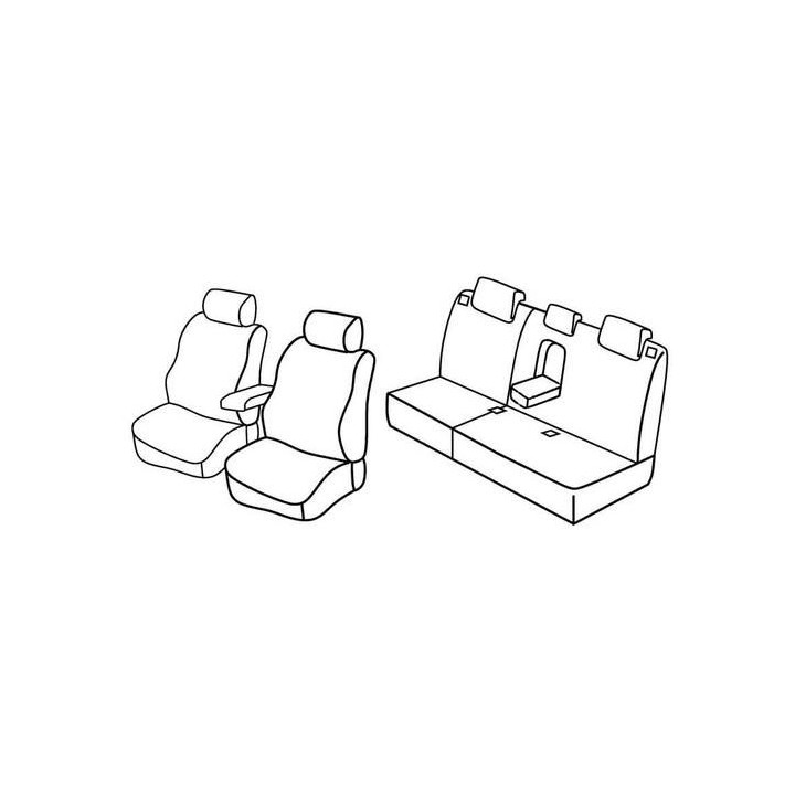 set of custom-made fabric covers for front (2 front seats + armrest + 2 headrests) + (rear bench: seat + backrest + headrests)