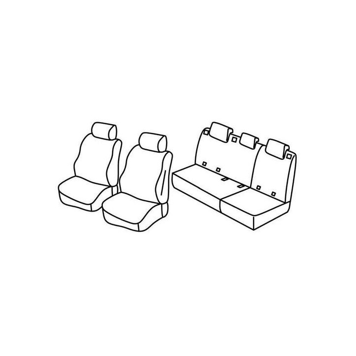 set of custom-made fabric covers for front (2 front seats + armrest + 2 headrests) + (rear bench: seat + backrest + headrests)
