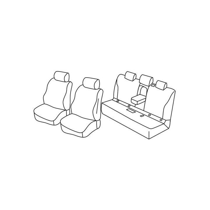 set of custom-made fabric covers for front (2 front seats + armrest + 2 headrests) + (rear bench: seat + backrest + headrests)