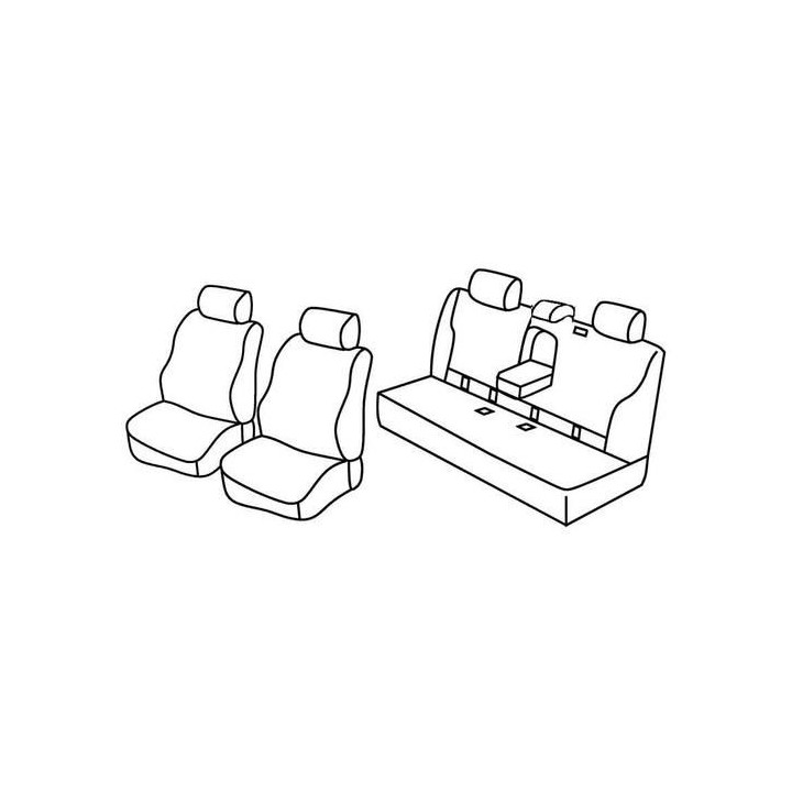 set of custom-made fabric covers for front (2 front seats + armrest + 2 headrests) + (rear bench: seat + backrest + headrests)