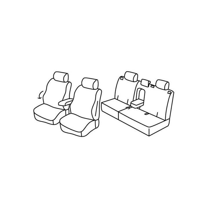 set of custom-made fabric covers for front (2 front seats + armrest + 2 headrests) + (rear bench: seat + backrest + headrests)