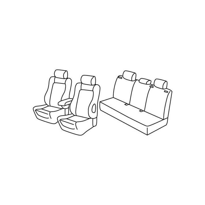 set of custom-made fabric covers for front (2 front seats + armrest + 2 headrests) + (rear bench: seat + backrest + headrests)