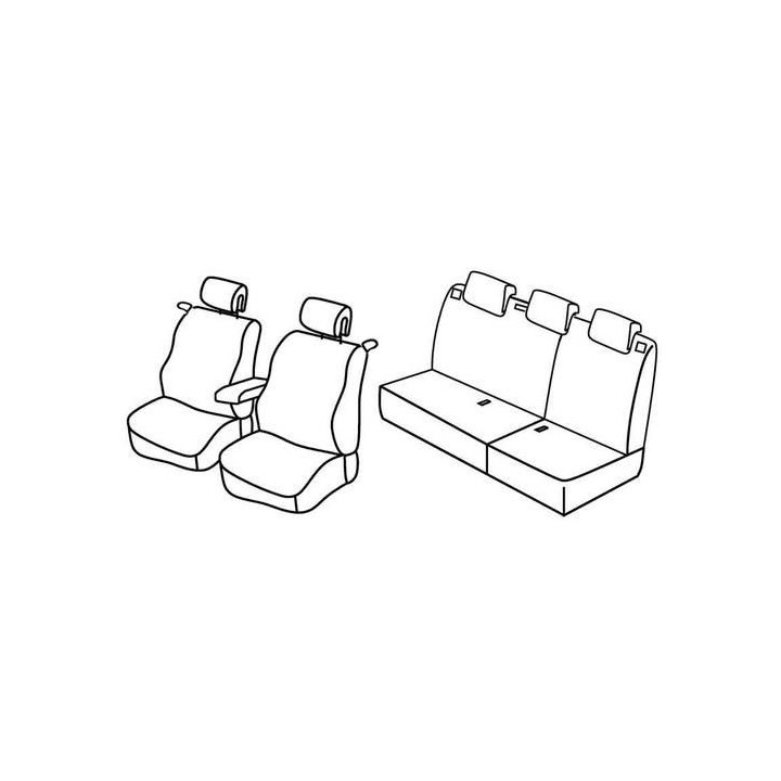 set of custom-made fabric covers for front (2 front seats + armrest + 2 headrests) + (rear bench: seat + backrest + headrests)