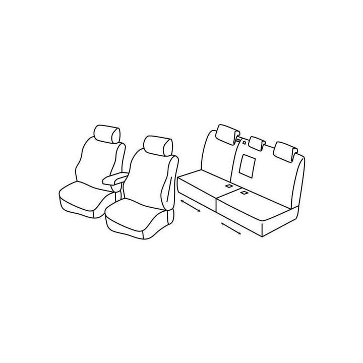 set of custom-made fabric covers for front (2 front seats + armrest + 2 headrests) + (rear bench: seat + backrest + headrests)