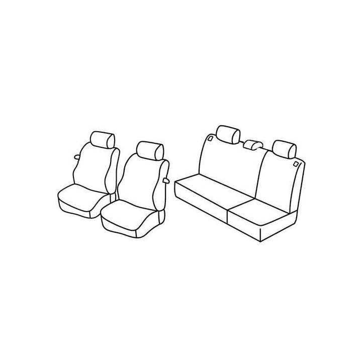 set of custom-made fabric covers for front (2 front seats + armrest + 2 headrests) + (rear bench: seat + backrest + headrests)
