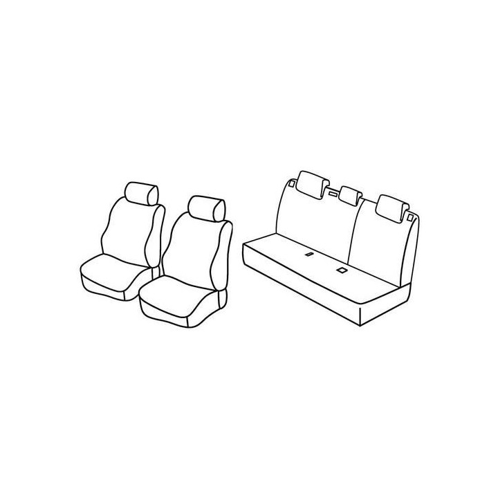 set of custom-made fabric covers front (2 front seats + armrest + 2 headrests) + (rear bench: seat + backrest + headrests)
