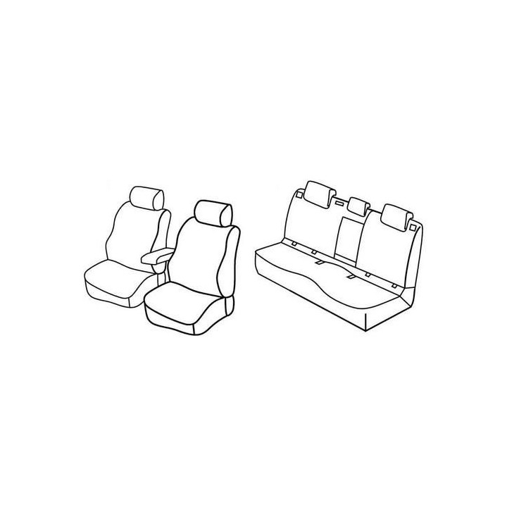 set of custom-made fabric covers for front (2 front seats + armrest + 2 headrests) + (rear bench: seat + backrest + headrests)