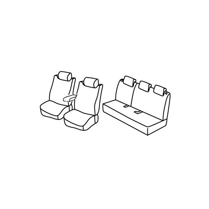 set of custom-made fabric covers for front (2 front seats + armrest + 2 headrests) + (rear bench: seat + backrest + headrests)