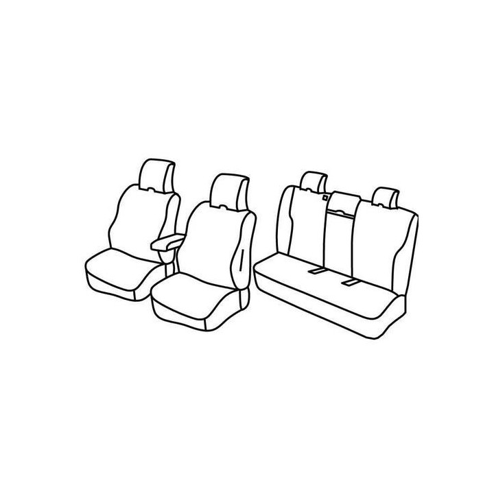 set of custom fabric covers front (2 front seats + armrest + 2 headrests) + (rear bench: seat + backrest + headrests)