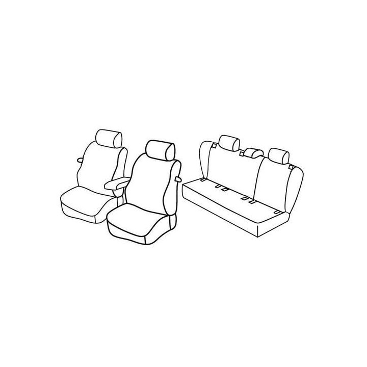set of custom fabric covers for front (2 front seats + armrest + 2 headrests) + (rear bench: seat + backrest + headrests)