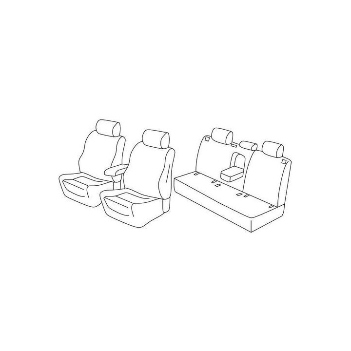 set of custom-made fabric covers for the front (2 front seats + armrest + 2 headrests) + (rear bench: seat + backrest + headrests)