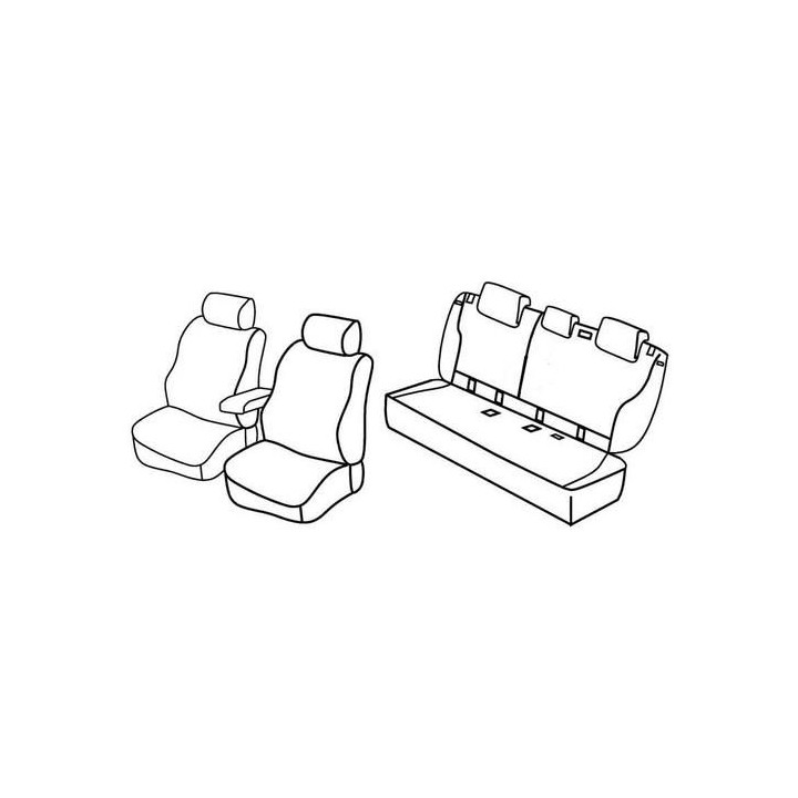 set of custom-made fabric covers for front (2 front seats + armrest + 2 headrests) + (rear bench: seat + backrest):