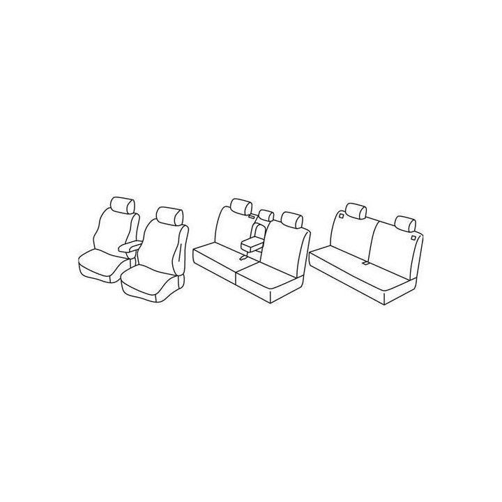 custom-made fabric seat covers set front (2 front seats + armrest + 2 headrests) + (rear bench: seat + backrest + headrests (3 seats))+ (rear bench: seat + backrest + headrests (2 seats))