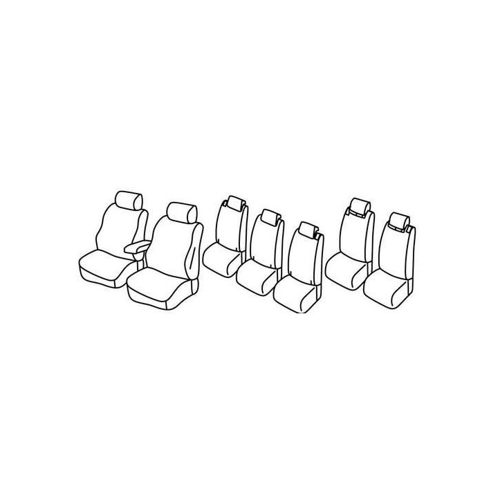 set of custom fabric covers front (2 front seats + armrest + 2 headrests) + (3 x rear seats: seat + backrest + headrests) + (2 x rear seats: seat + backrest + headrests)
