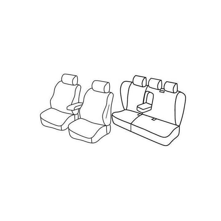 set of custom-made fabric covers front (2 front seats + armrest + 2 headrests) + (rear bench: seat + backrest + headrests)