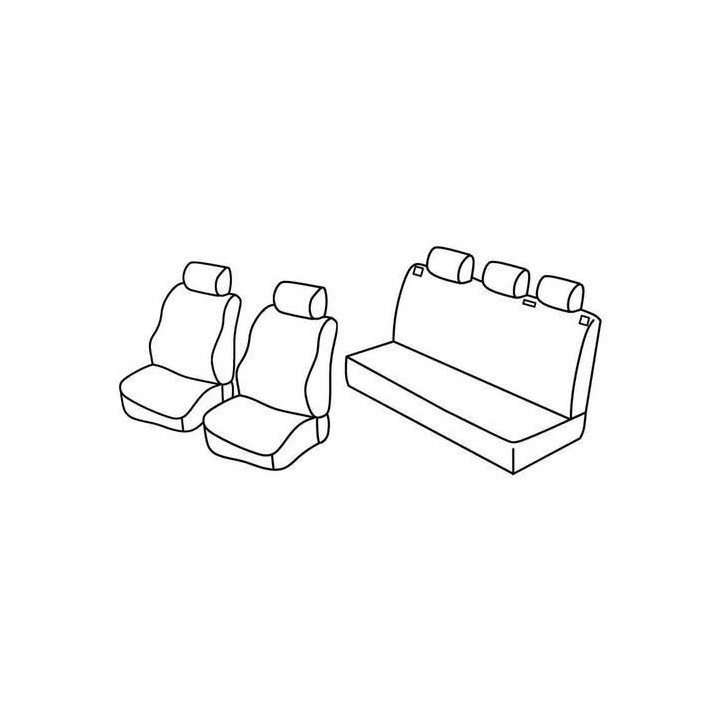 set of custom-made fabric covers for front (2 front seats + armrest + 2 headrests) + (rear bench: seat + backrest + headrests)