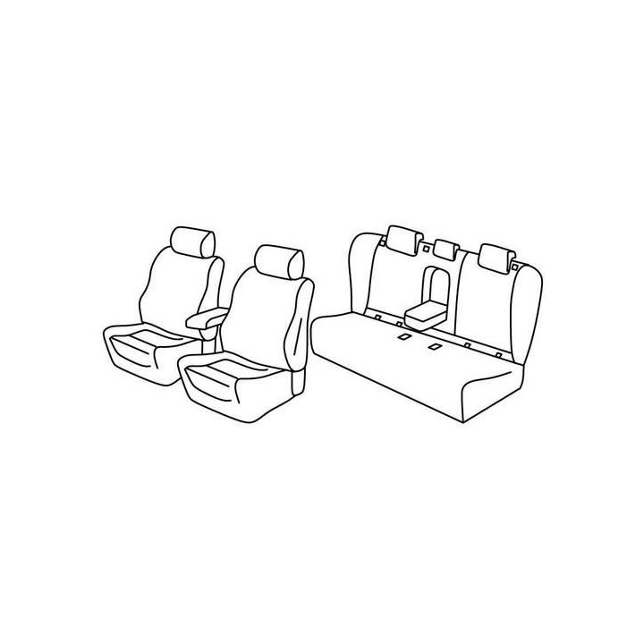 set of custom fabric covers for front (2 front seats + armrest + 2 headrests) + (rear bench: seat + backrest + headrests)