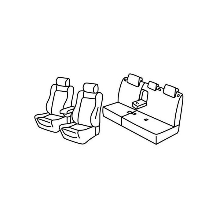 set of custom fabric covers front (2 front seats + armrest + 2 headrests) + (rear bench: seat + backrest + headrests)