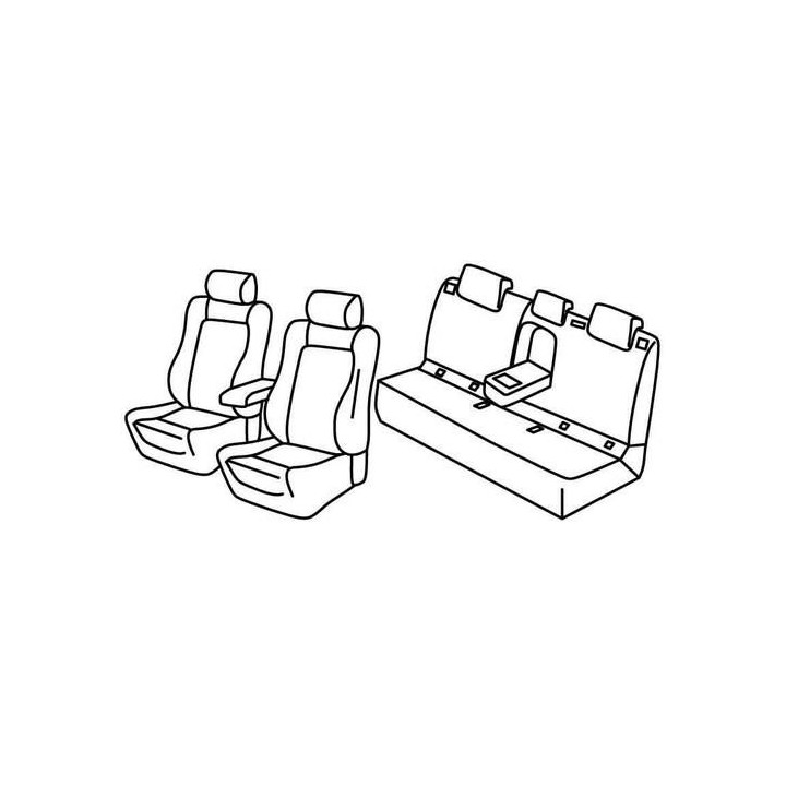 set of custom fabric covers front (2 front seats + armrest + 2 headrests) + (rear bench: seat + backrest + headrests)