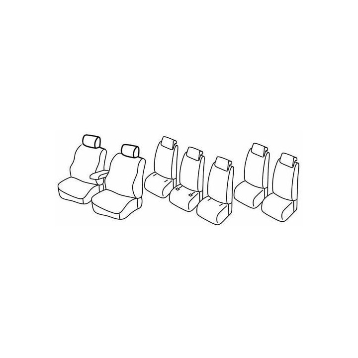 set of custom fabric covers for front (2 front seats + armrest + 2 headrests) + (3 x rear seats: seat + backrest + headrests) + (2 x rear seats: seat + backrest + headrests)