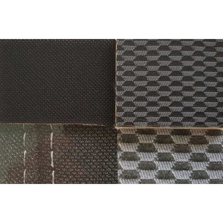High-tech polyester fabric, Oeko-Tex © Standard 100 certified, highly resistant to wear, flaking, fading, washing (conforms to UNI EN ISO 105X12, 105-E01, 13934-1, FIAT 50455 / A / 01)